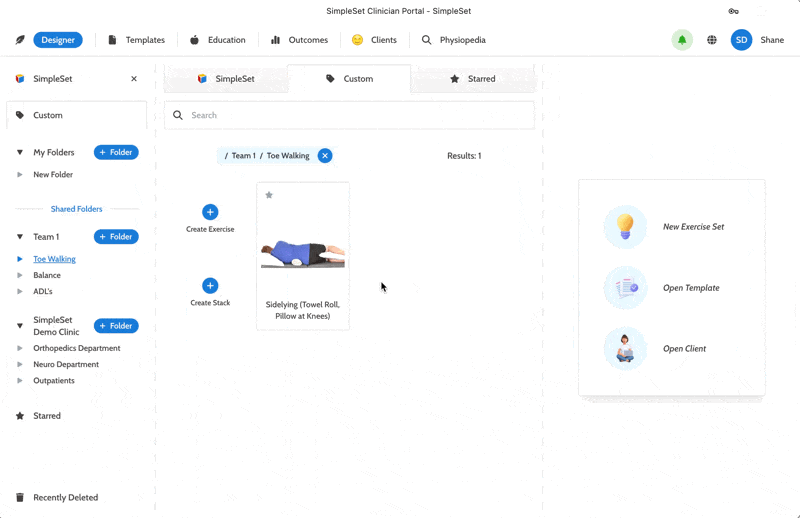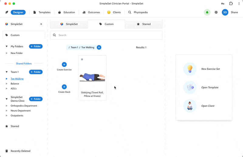 Add Folders to organize your Custom tab. If you are part of a Team, you can easily share content with other SimpleSet users.