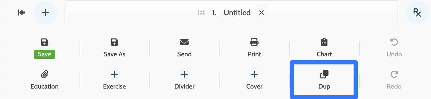 1. Once you've built your Exercise Set, find the Dup button at the top of the Designer.