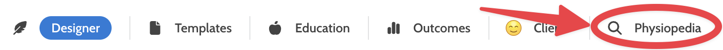 1. Locate the Physiopedia option in the top bar. Click to open the search field.