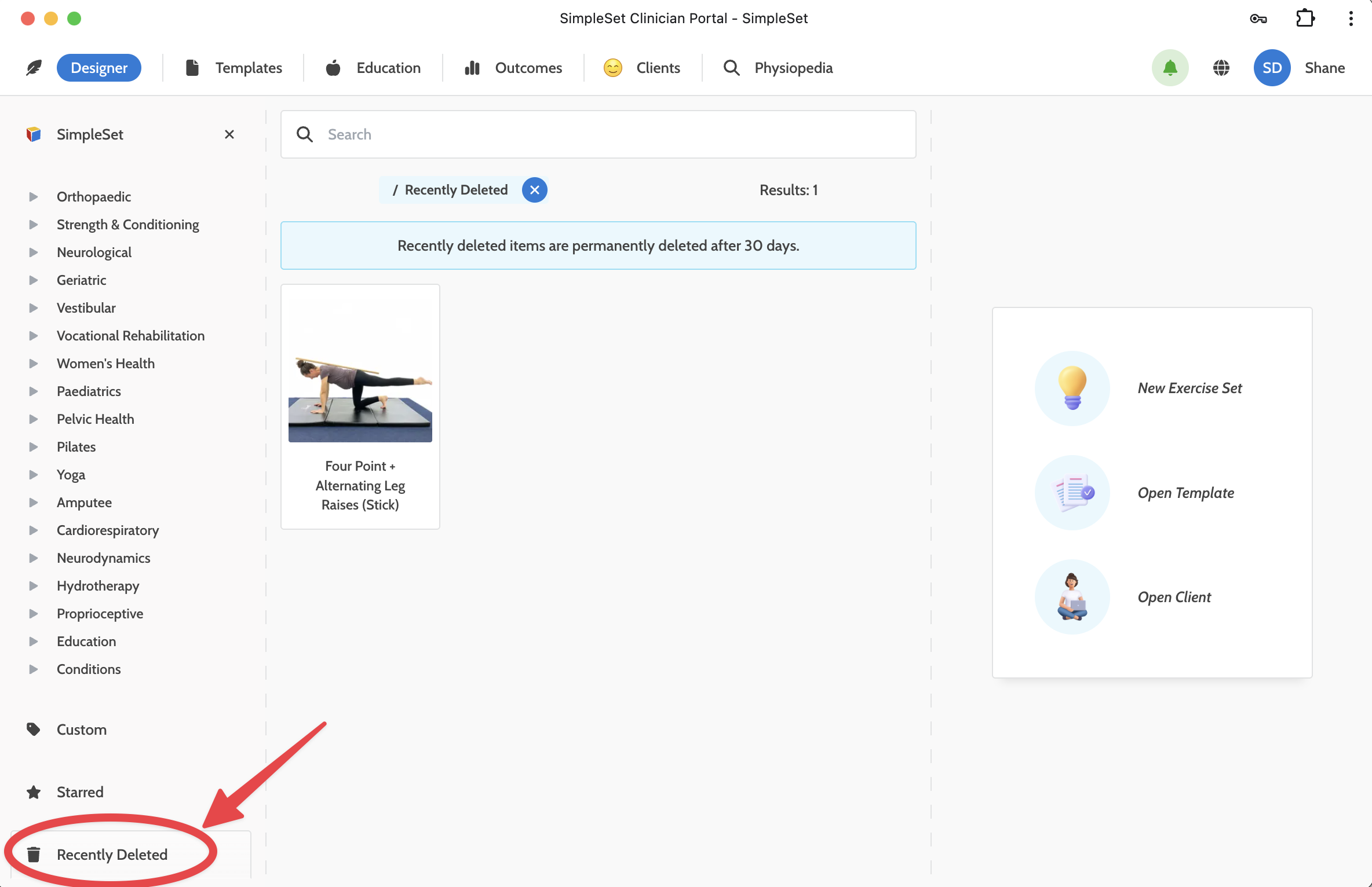 A new addition to the Category Tree is the Recently Deleted section. Any exercises you delete will be stored here for 30 days.