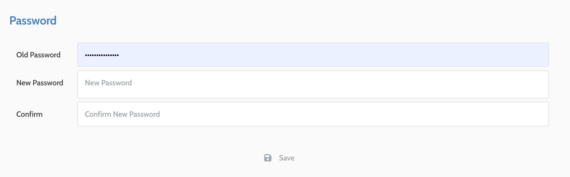 3. Enter your existing password, then the new password. Confirm the new password by entering it again (make sure they match!) and hit save. Done!