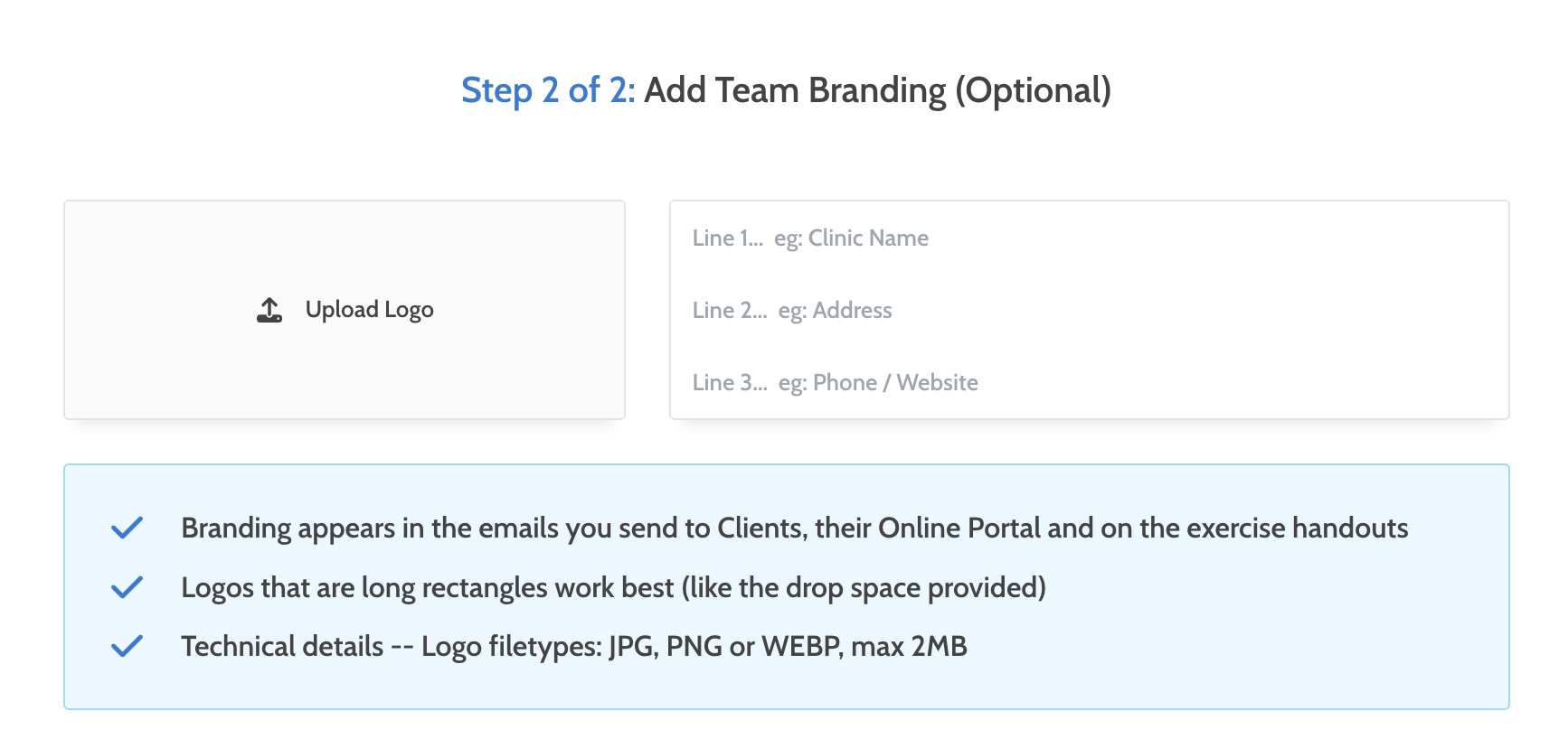 Branding appears in every email you send to Clients, on exercise handouts and in their Exercise Portal.