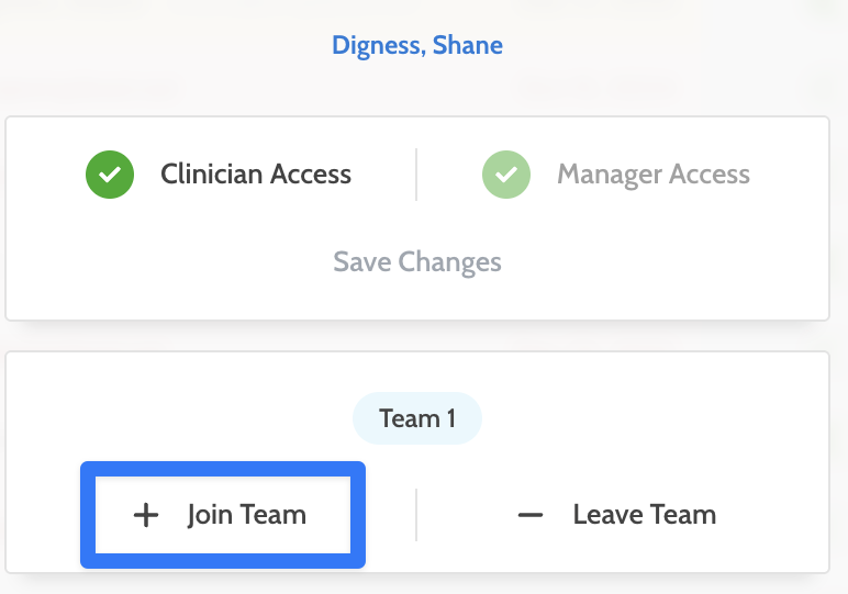 2. Click on the Staff member you want to make changes to and use the "+ Join Team" option to add the staff to as many Teams as you need. If you accidentally add them to the wrong Team or they have moved Teams, you can use the "- Leave Team" to remove them from a Team.