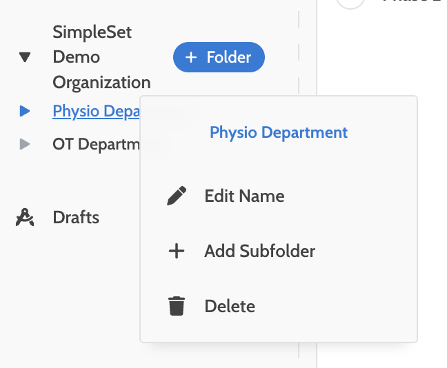 - To create a subfolder, right click and choose Add Subfolder from the root folder menu you want to add a folder under: