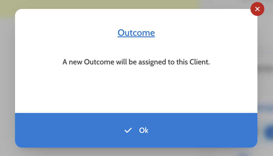 - If this is your first time sending an Outcome to this client, you will be told that it is going to assign a new Outcome. You will also receive this for each new Outcome you create for this client