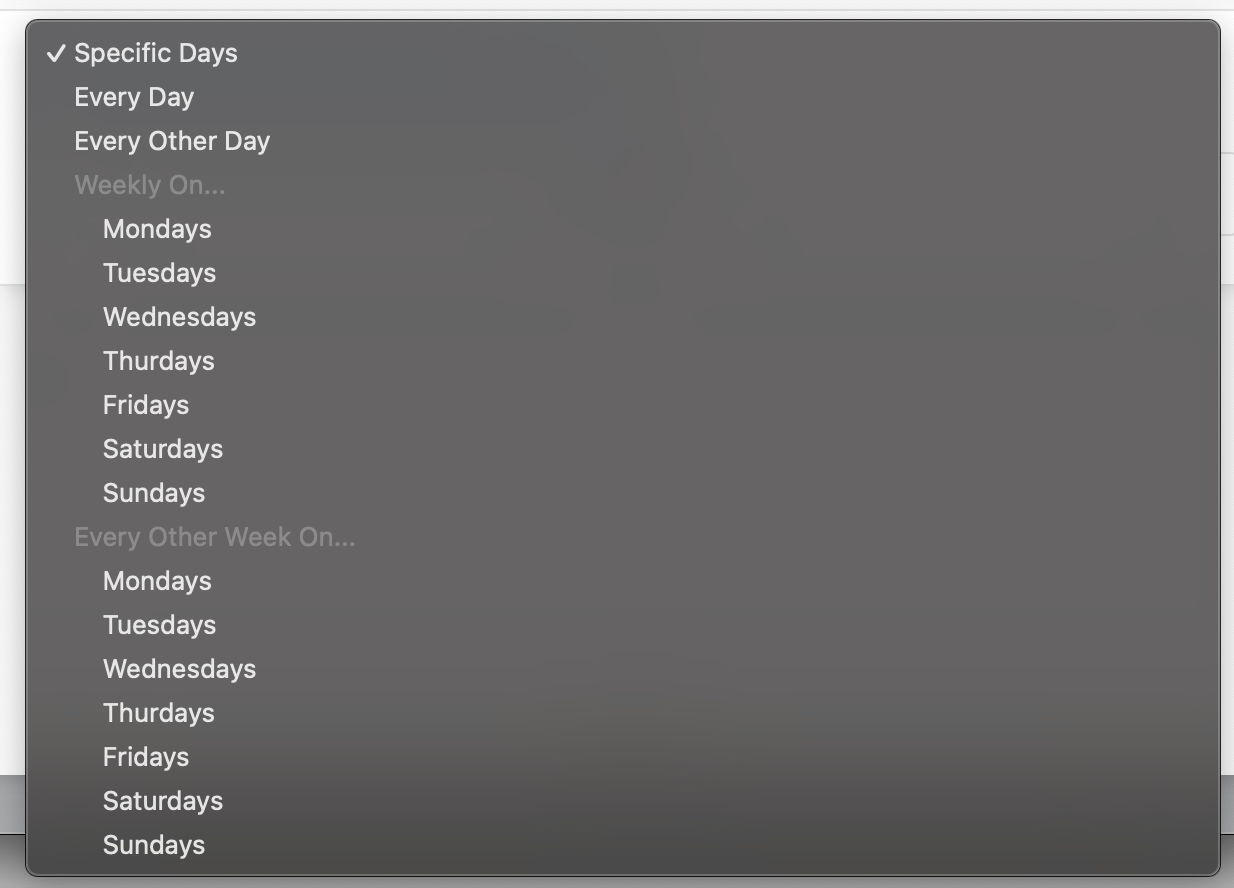 5. Click the Send On button and choose the interval you want the Outcome Measure to be sent.