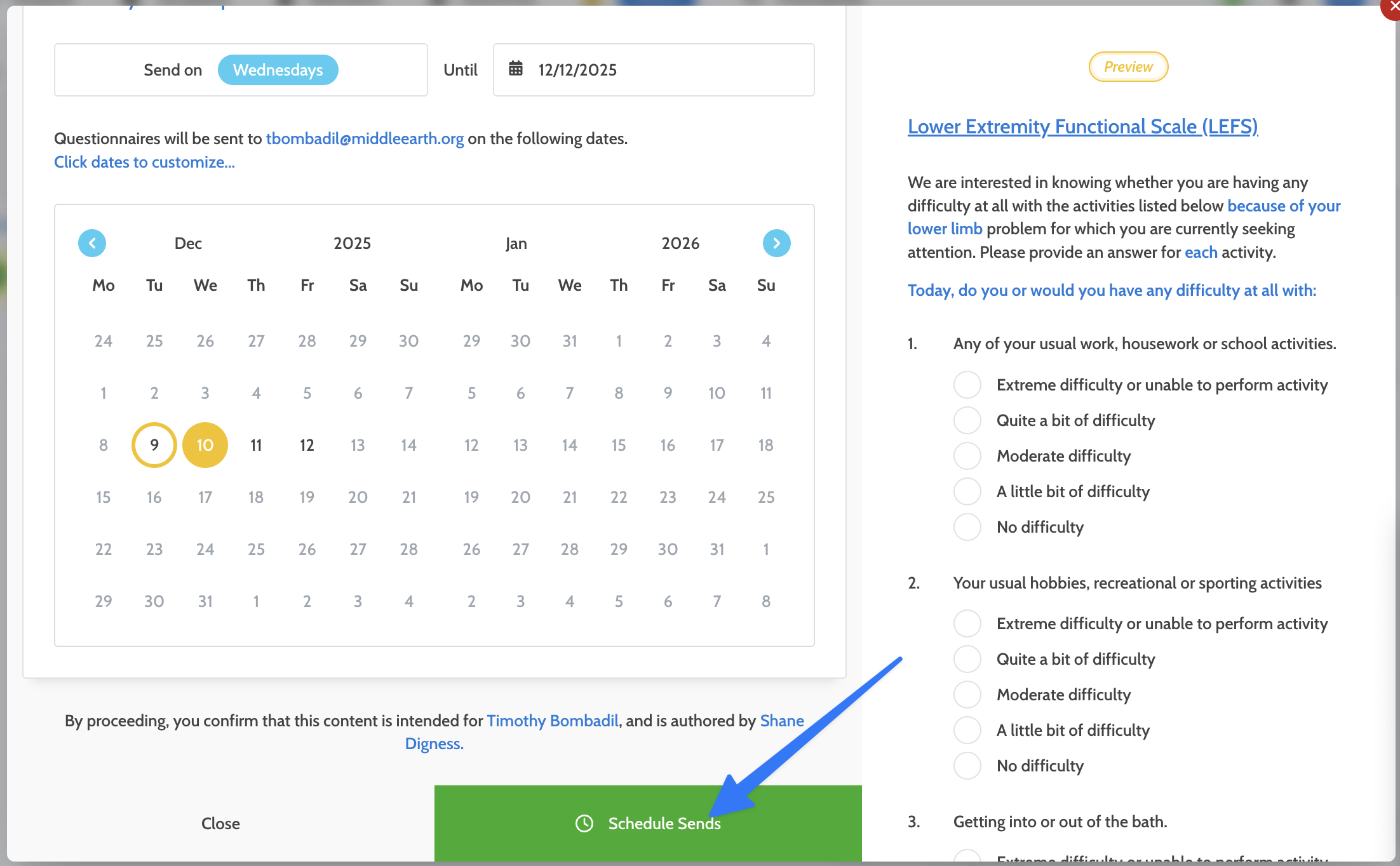 6. After you set your interval, you can choose the end date for this Outcome Measure. Once your dates are set, click "Schedule Sends" and you're set!