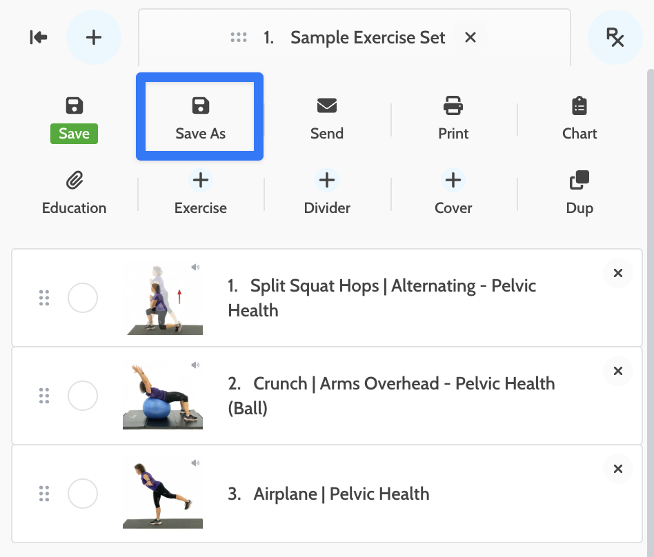 1. Build your exercise set in the designer, hit "Save As" and choose "As Template".