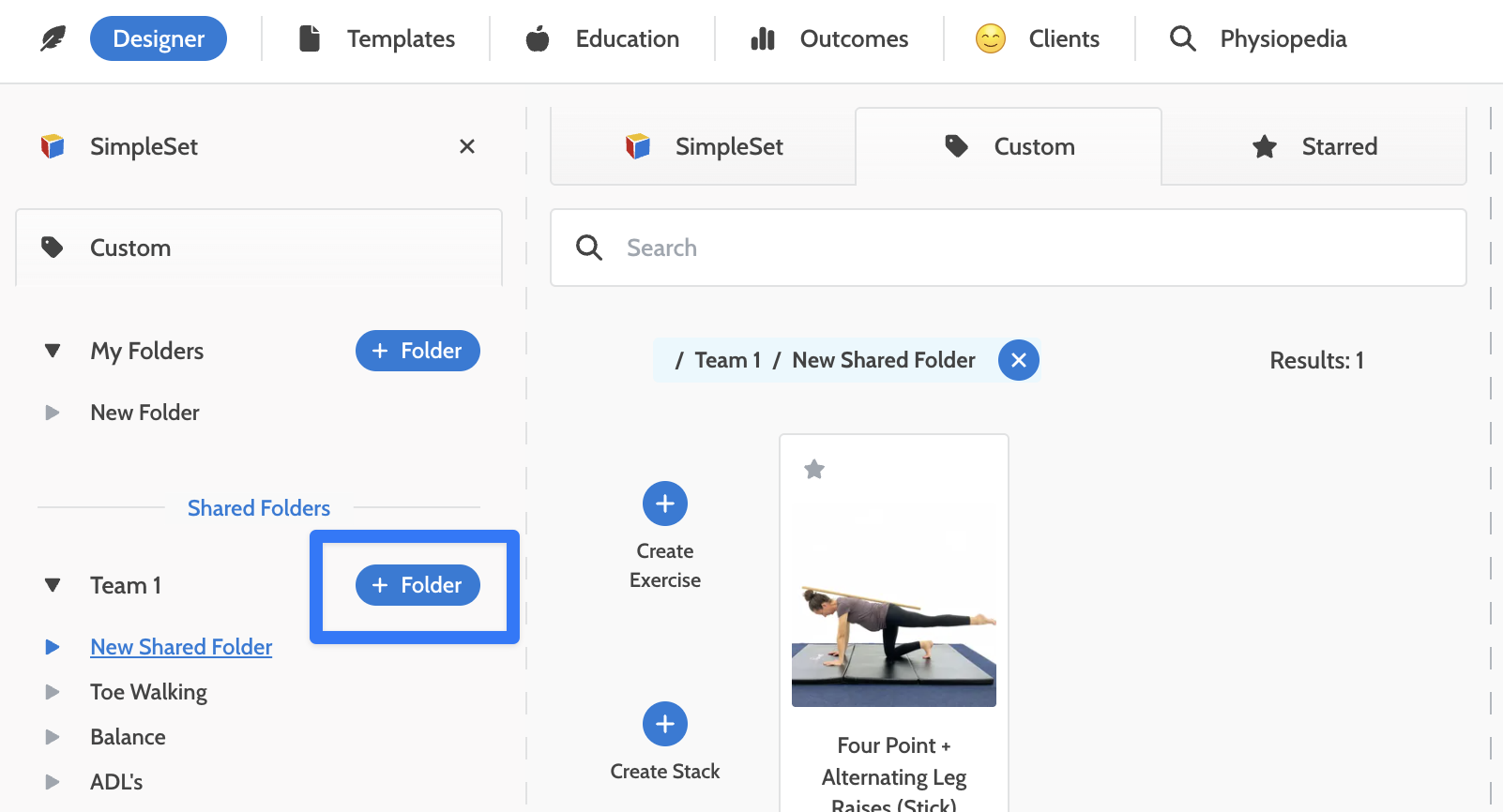 Adding Exercise Sets to a Team Folder